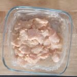 - Wash and cut chicken breasts into small chunks and put them in a Mixing Bowl.