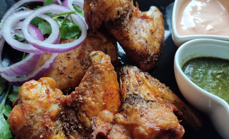 - Tada! Your Chicken Wings are ready to serve. You can serve Chicken Wings with Homemade Green Chutney, Dip and fresh onion rings, which will enhance the taste of Chicken Wings more.