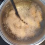- Carefully drop namakpare in the pan. Do not overcrowd the pan. If you are making in large quantity, fry in small batches.