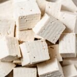 - Drain the tofu and pat it dry with a paper towel. Cut it into cubes and set aside.