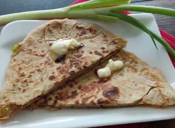 Sattu Parantha is a traditional Indian flatbread that is made using a dough made of roasted chana dal flour (sattu) and wheat flour. The dough is rolled out and cooked on a griddle until golden brown, resulting in a crispy and flavorful flatbread. It is usually served hot and is often accompanied by yogurt or pickles. A popular Bihari breakfast dish made from whole wheat dough filled with sattu, spices, and herbs.